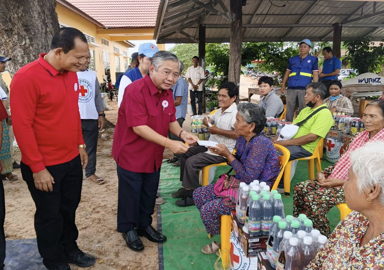 លោក បឹង គឹមសឹង ប្រធានមន្ទីរសេដ្ឋកិច្ច និងហិរញ្ញវត្ថុខេត្តបន្ទាយមានជ័យ និងជាអនុប្រធានគណៈកម្មាធិការសាខា តំណាងឯកឧត្តម អ៊ុំ រាត្រី ប្រធានគណៈកម្មាធិការសាខាកាកបាទក្រហមកម្ពុជា ខេត្តបន្ទាយមានជ័យ បានអញ្ជើញចូលរួមនាំយកអំណោយមនុស្សធម៌របស់សាខាកកាកបាទក្រហមខេត្តបន្ទាយមានជ័យ ទៅចែកជូនគ្រួសាររងគ្រោះខូចខាតផ្ទះសំបែងដោយសារជម្លោះព្រំដែនកម្ពុជា-ថៃ ចំនួន១២៥គ្រួសារ នៅស្រុកស្វាយចេក ខេត្តបន្ទាយមានជ័យ មានការអញ្ជើញចូលរួម គណៈកិត្តិយសសាខា គណៈកម្មាធិការសាខា អនុសាខា ក្រុមកាកបាទក្រហមឃុំ អ្នកស្ម័គ្រចិត្ត និងយុវជនកាកបាទក្រហមកម្ពុជា ។