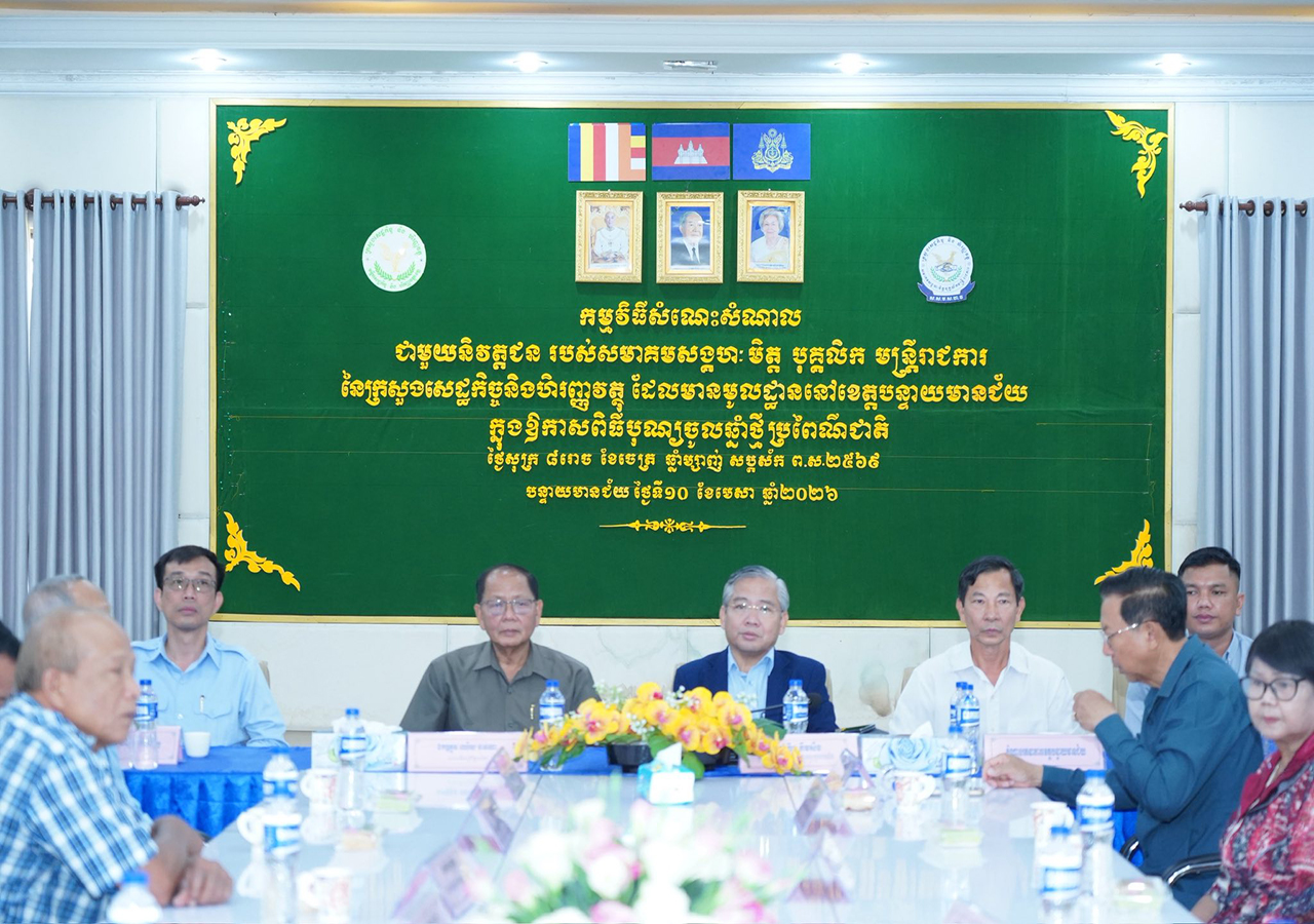 លោកបឹង គឹមសឹង ប្រធានមន្ទីរសេដ្ឋកិច្ចនិងហិរញ្ញវត្ថុខេត្ត បន្ទាយមានជ័យ បានដឹកនាំរៀបចំកម្មវិធីសំណេះសំណាលជាមួយនិវត្តជនរបស់មន្ទីរសេដ្ឋកិច្ច និងហិរញ្ញវត្ថុខេត្ត រតនាគារខេត្ត សាខាពន្ធដារខេត្ត សាខាគយ និងរដ្ឋាករខេត្ត នៃសមាគមសង្គហៈមិត្ត បុគ្គលិក មន្ត្រីរាជការនៃក្រសួងសេដ្ឋកិច្ច និងហិរញ្ញវត្ថុ។
